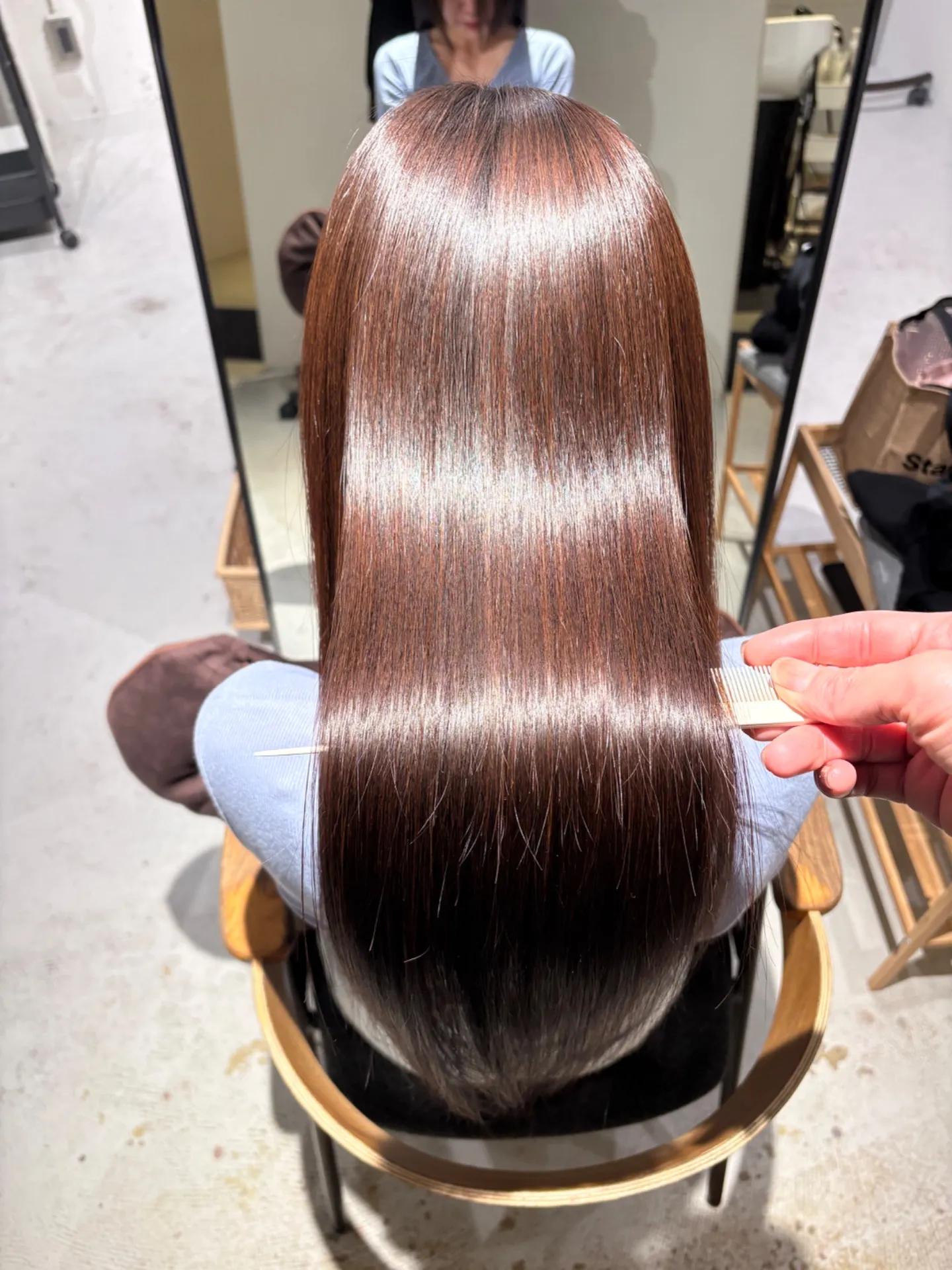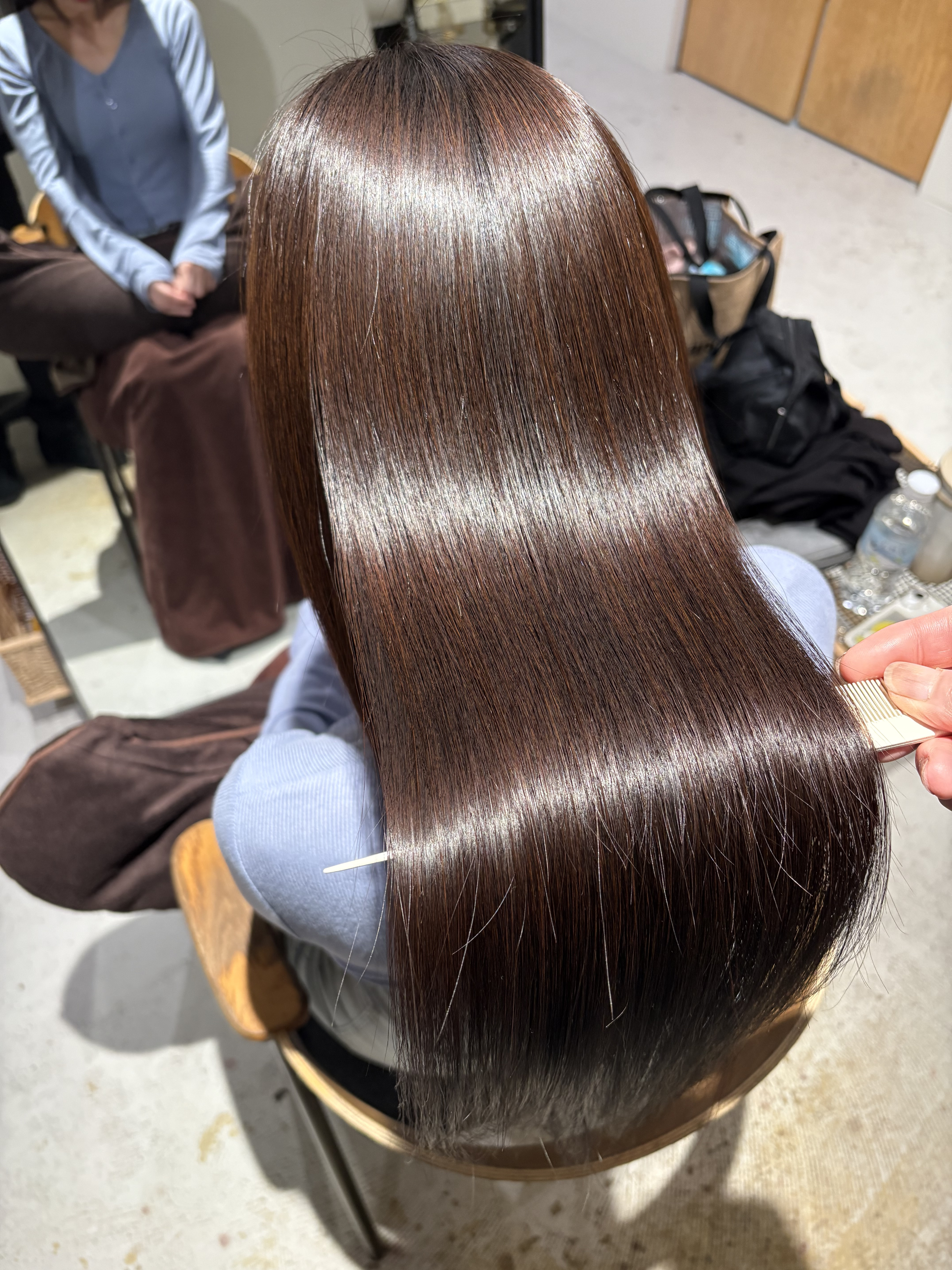 過去のトラウマもありお客様は心配されてましたが、しっかり綺麗になってもうmukuuでしか縮毛はお願いできないと喜んでいただけました😊